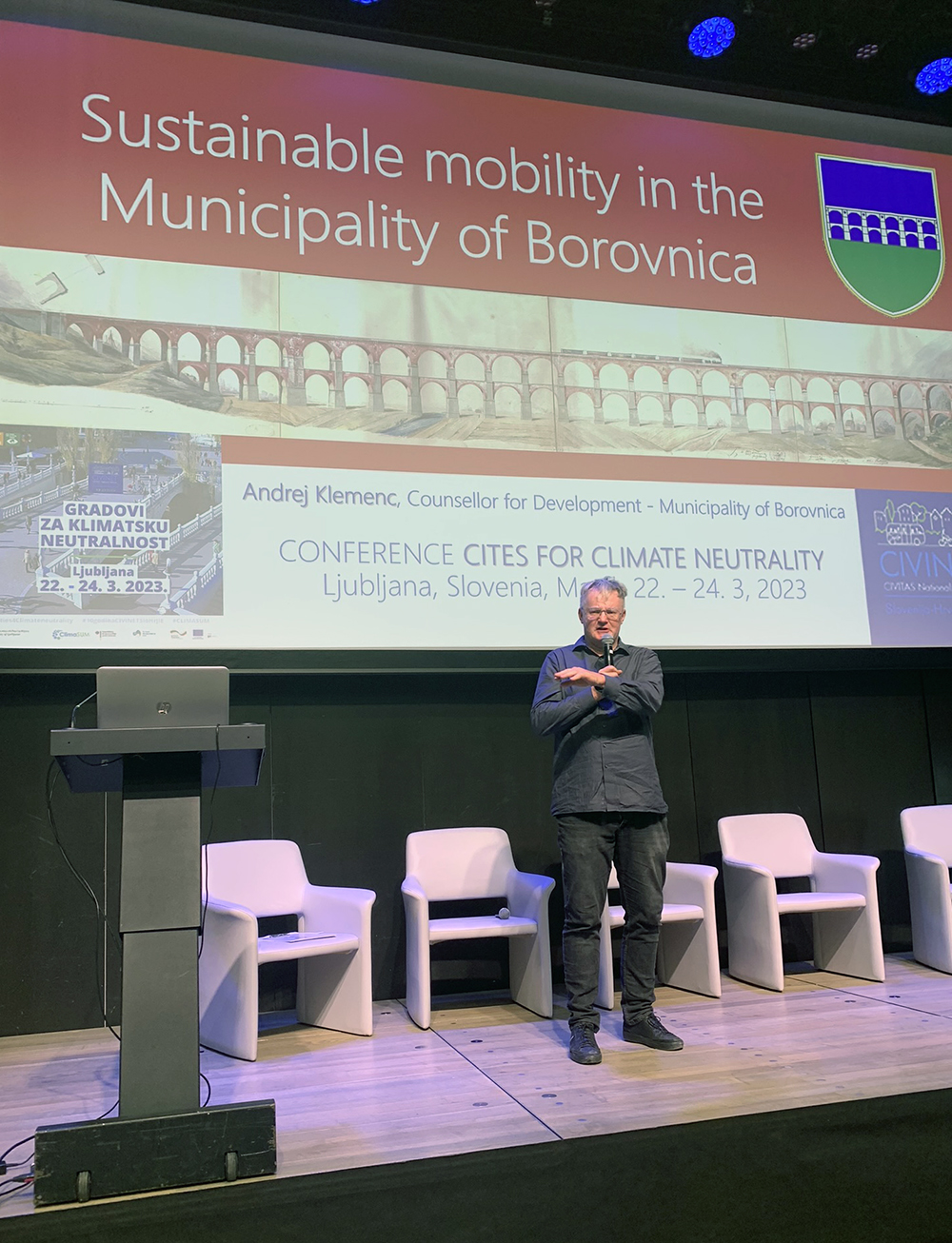 FotogalerijaMultimedija Konferencija “Gradovi za klimatsku neutralnost” (Ljubljana, 22. – 24. 3. 2023.) by CIVINET 29.03.2023 29.03.2023 12 civinet 10klimatska neutralnostkonferencijaLjubljanaproSUMPskupština 0 FacebookTwitterPinterestEmail Prethodna objava Španjolska razmišlja o plaćanju građana koji na posao putuju biciklom Sljedeća objava Europska komisija namjerava pojačati svoju podršku biciklističkom prometu novom Europskom deklaracijom o biciklizmu Slične objave 8. CIVINET Forum: Na putu prema klimatski neutralnim... 25.10.2023 Radionica “Budućnost SUMP-ova u regiji” (Rijeka, 19. –... 24.01.2023 7. CIVINET Forum (Velenje, 13. – 14. 10.... 19.10.2022 Sastanak europskih mreža CIVINET (Zagreb, 23. – 25.... 26.05.2022 Studijsko putovanje u Prag (11. – 13. 4.... 26.04.2022 Skup “Gradovi, klima i promet” (Zagreb, 17. –... 21.03.2022 Hibridne radionice o javno-privatnim partnerstvima i ruralno-urbanoj mobilnosti... 01.02.2022 Mišljenje EGSO-a: Intermodalni prijevoz i multimodalna logistika 05.01.2022 Mišljenje EGSO-a: Evaluacija – Bijela knjiga o prometu... 05.01.2022 Mišljenje EGSO-a: Strategija za održivu i pametnu mobilnost 05.01.2022