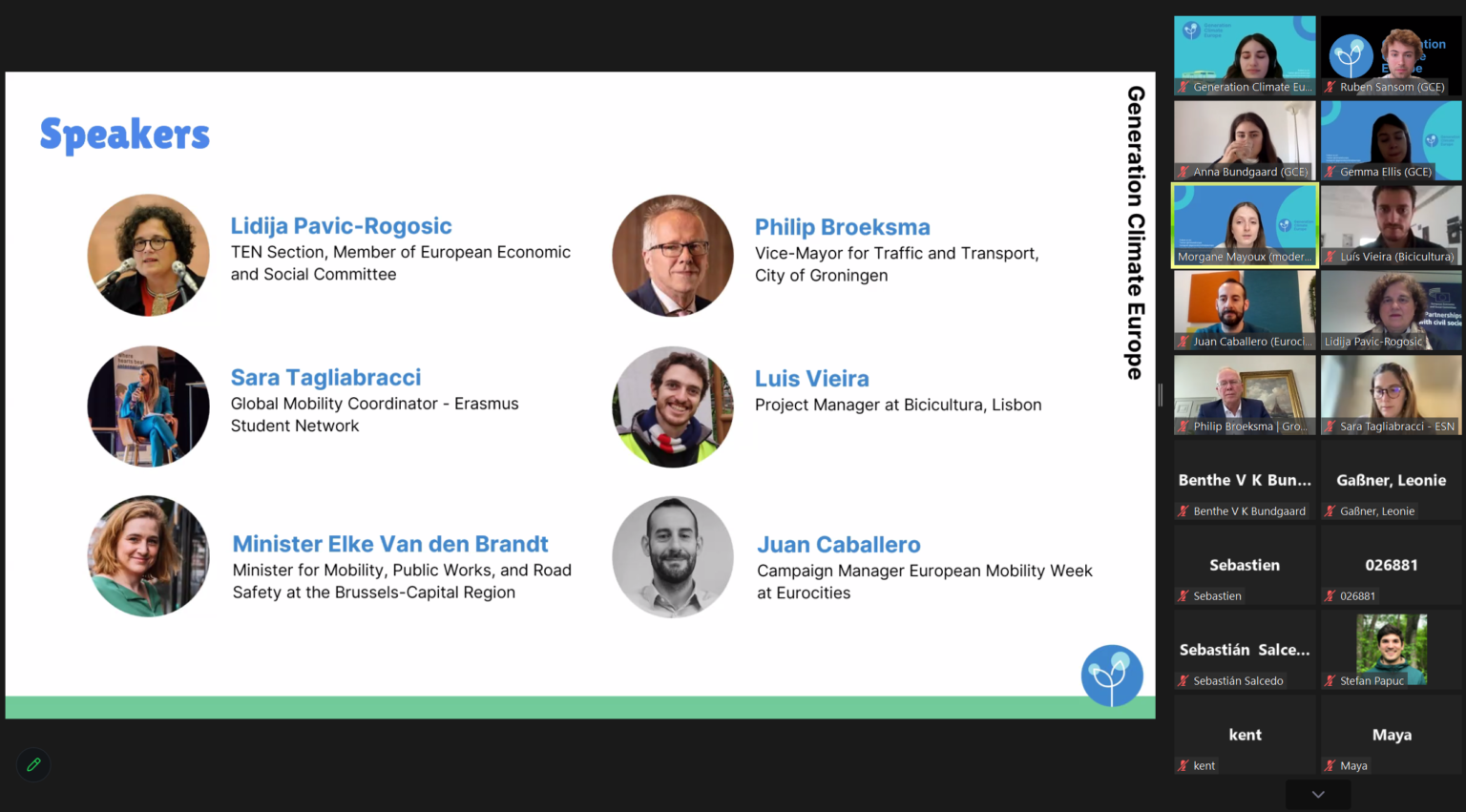 Tijekom internetskog događaja, GCE je predstavio svoj najnoviji izvještaj: Mladi u pokretu: učiniti zelenu urbanu mobilnost dostupnom svima te se raspravljalo o implikacijama nalaza. Izvještaj je napravljen nakon godinu dana istraživanja i intervjuiranja stotina mladih ljudi u 10 ključnih gradova EU-a s ciljem da do 2030. budu klimatski neutralni. Dokazi su jasni: mnogi mladi Europljani trebaju jeftiniji, sigurniji i pouzdaniji čisti prijevoz.