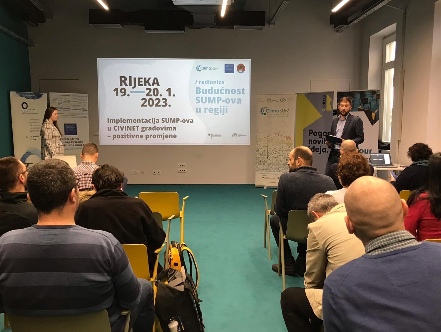 FotogalerijaMultimedija Radionica “Budućnost SUMP-ova u regiji” (Rijeka, 19. – 20. 1. 2023.) by CIVINET 24.01.2023 24.01.2023 11 0 FacebookTwitterPinterestEmail Prethodna objava Francuska metropola Lille planira platiti vozačima da ostave svoj automobil Sljedeća objava Sudjelujte u CIVITAS-ovom natječaju za vizualnu priču i osvojite jednomjesečnu kartu za Interrail! Slične objave 8. CIVINET Forum: Na putu prema klimatski neutralnim... 25.10.2023 Konferencija “Gradovi za klimatsku neutralnost” (Ljubljana, 22. –... 29.03.2023 7. CIVINET Forum (Velenje, 13. – 14. 10.... 19.10.2022 Sastanak europskih mreža CIVINET (Zagreb, 23. – 25.... 26.05.2022 Studijsko putovanje u Prag (11. – 13. 4.... 26.04.2022 Skup “Gradovi, klima i promet” (Zagreb, 17. –... 21.03.2022 Hibridne radionice o javno-privatnim partnerstvima i ruralno-urbanoj mobilnosti... 01.02.2022 Mišljenje EGSO-a: Intermodalni prijevoz i multimodalna logistika 05.01.2022 Mišljenje EGSO-a: Evaluacija – Bijela knjiga o prometu... 05.01.2022 Mišljenje EGSO-a: Strategija za održivu i pametnu mobilnost 05.01.2022